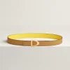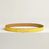 Belt buckle in metal. Inspired by the equestrian world, this buckle is shaped like a stirrup, the Hermès' emblem. A delicate Hermès engraving adorns the edge of the buckle. & Reversible leather strap in Swift and Epsom calfskin.