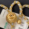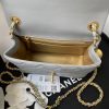 The interior is lined in gold metallic lambskin with a zippered pocket with Chanel zipper and an open pocket underneath.