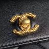 This exquisite Chanel evening bag captivates with its elegant design and luxurious details. The pure black body, reminiscent of a starry night, is both simple and sophisticated. The intricate diamond pattern and iconic gold double-C logo exude understated luxury, while the unique handle adds a touch of charm and playfulness. The classic black and gold combination makes it a perfect accessory for evening events and formal attire.