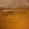 The interior is lined in gold leather and canvas with two open slip pockets on each wall.
