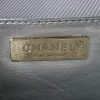Measurements: 8.8 × 8.8 × 2.3 in / 22.5 × 22.5 × 6 cm This Chanel Star Bag is crafted from metallic silver lambskin with gold-tone hardware and features a half-moon back pocket, zip top closure and interwoven gold-tone chain link and silver-tone leather shoulder strap. The interior is lined with silver-tone leather and canvas with two open slip pockets on each side wall.