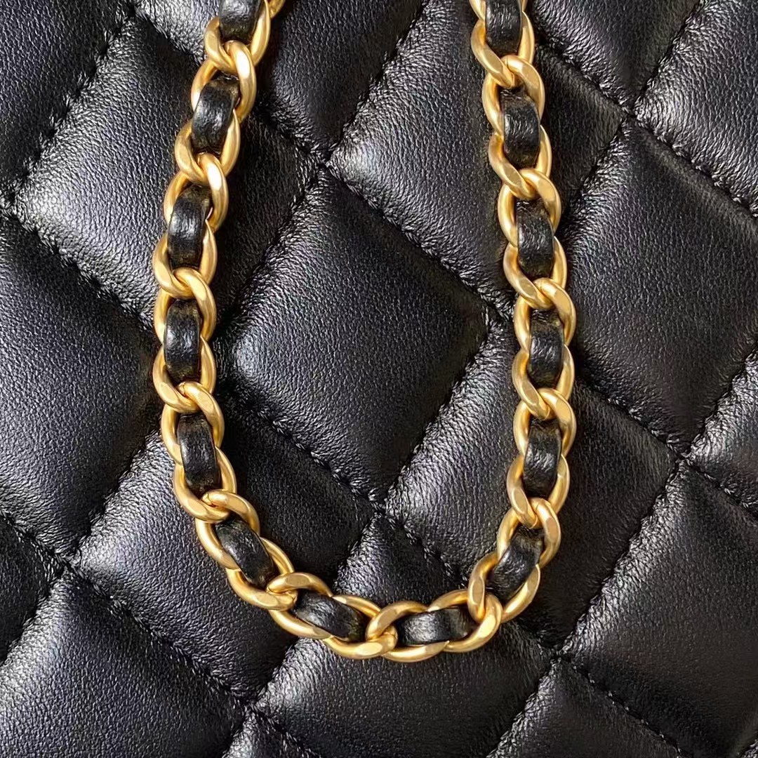 Chanel 24C AS4596 Vintage Logo Quilted Lambskin Shoulder Bag Black