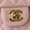 Measurements: 6 x 9.9 x 2.5 in / 15.5 × 25.5 × 6.5 cm This medium classic double flap bag is crafted in pink caviar leather with light gold hardware, featuring the signature CC turnlock closure on the front flap, half-moon back pocket, adjustable interwoven light gold chain and pink leather shoulder strap. The interior is lined with pink leather and features a "love letter" zip compartment under the first flap, an "outside" open pocket under the second flap, and an interior compartment with two open pockets separated by a "lipstick" compartment.
