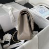 Measurements: 6 x 9.9 x 2.5 in / 15.5 × 25.5 × 6.5 cm This medium classic double flap bag is crafted in dark grey lambskin leather with gold hardware, featuring the signature CC turnlock closure on the front flap, half-moon back pocket, adjustable interwoven gold chain and dark grey leather shoulder strap. The interior is lined with dark grey leather, with a "love letter" zippered compartment under the first flap, an "outside" open pocket under the second flap, and an interior compartment with two open pockets separated by a "lipstick" compartment in the middle.