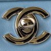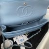 This medium classic double flap bag is crafted in blue lambskin with silver hardware, front flap with signature CC turnlock closure, half-moon back pocket, adjustable silver interwoven chain and blue leather shoulder strap.