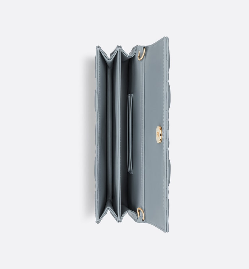• The My Dior mini bag expands the line with an elegant and functional design. Crafted in cloud blue Cannage lambskin, it features a flap enhanced by D.I.O.R. charms on the front. Equipped with compartments and card slots, the functional accessory holds all the essentials and is the ideal day and evening companion. A top handle completed by a removable chain punctuated with resin pearls allows the bag to be carried by hand or worn crossbody.