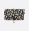 • The Saddle pouch with chain is a modern and practical creation with smooth and harmonious lines. Crafted in blue Dior Oblique jacquard, it features an asymmetric flap and an antique gold-finish metal D stirrup. The spacious interior will accommodate any essentials, while the chain allows it to be worn over the shoulder or crossbody. The pouch can be paired with other Saddle creations.