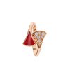 The Divas’ Dream rings embody Italian elegance and unleash the power of women with a mysterious and unforgettable temperament. The charming and exquisite rings are decorated with fan-shaped patterns, inspired by the mosaic decoration of the Baths of Caracalla in Rome, and highlight the historical origins of Bvlgari and the “Eternal City” Rome with modern and fashionable design and exquisite gemstone combination. Divas’ Dream rings in 18K rose gold, inlaid with carnelian and decorated with pavé diamonds.