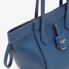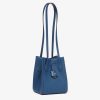 Mini Origami Bag. The style recalls the duality and creativity of Fendi with an innovative and transformable design: the ingenious closure with eight magnets means the bag can be folded, origami-style, transforming it from a bucket bag, when the magnets come together in the middle with a magic clasp, into a shopper by gently pulling the leather ties on the short shoulder straps on each side. Made of blue full-grain calfskin. It comes with a key case charm with the words “Fendi Roma” in metal. Lined inner compartment and gold-finish metalware. It can be carried by hand or worn on the shoulder thanks to the two calfskin handles. Holds a 6.7-inch smartphone, Mini Trifold card holder or wallet, keys and lipstick.