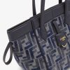 Mini Origami Bag. The style recalls the duality and creativity of Fendi with an innovative and transformable design: the ingenious closure with eight magnets means the bag can be folded, origami-style, transforming it from a bucket bag, when the magnets come together in the middle with a magic clasp, into a shopper by gently pulling the leather ties on the short shoulder straps on each side. Made of chenille with the iconic FF motif in dark blue gradient tones and dark blue calfskin trims. It comes with a key case charm with the words “Fendi Roma” in metal. Lined inner compartment and gold-finish metalware. It can be carried by hand or worn on the shoulder thanks to the two calfskin handles. Holds a 6.7-inch smartphone, Mini Trifold card holder or wallet, keys and lipstick.