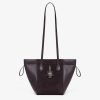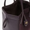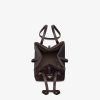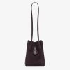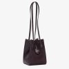 Mini Origami Bag. The style recalls the duality and creativity of Fendi with an innovative and transformable design: the ingenious closure with eight magnets means the bag can be folded, origami-style, transforming it from a bucket bag, when the magnets come together in the middle with a magic clasp, into a shopper by gently pulling the leather ties on the short shoulder straps on each side. Made of dark purple suede with sides in tone-on-tone calfskin. It comes with a key case charm with the words “Fendi Roma” in metal. Lined inner compartment and gold-finish metalware. It can be carried by hand or worn on the shoulder thanks to the two calfskin handles.