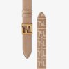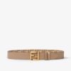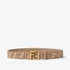 Reversible belt with loop and iconic FF stud buckle. Made of beige leather on one side and denim-effect FF jacquard in beige and white on the other. Gold-finish metalware. Made in Italy