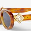 FF Diamonds oval glasses in light Havana acetate. Temples with functional FF Diamonds hinges in gold-colored metal. Blue lenses.
