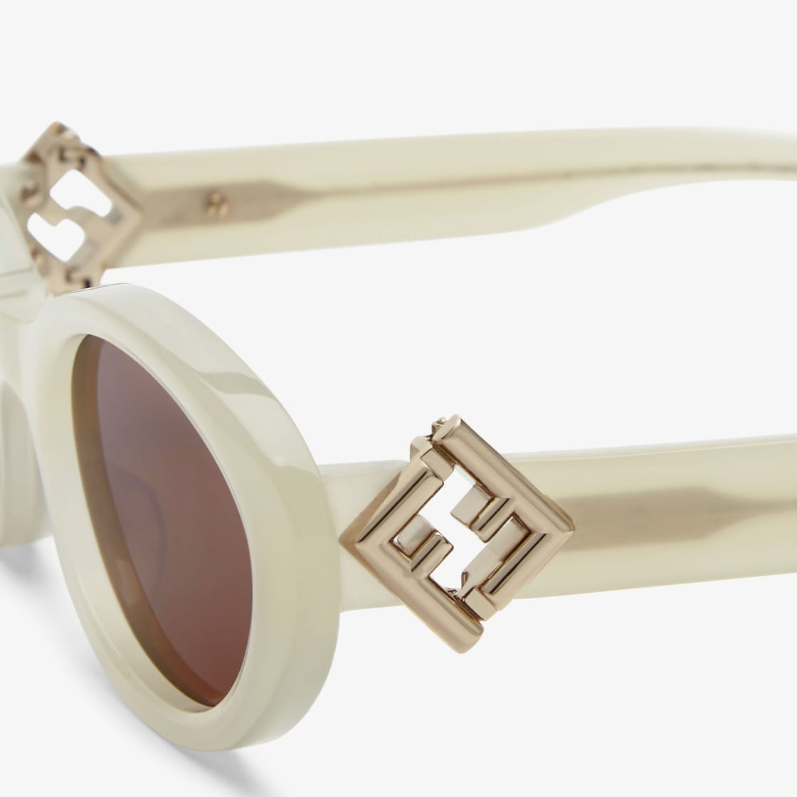 Oval FF Diamonds eyeglasses in white opalescent acetate. Temples with functional FF Diamonds hinges in gold-colored metal. Brown lenses.