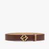 Reversible belt with double loop and diagonal FF stud buckle. Made of black leather on one side and brown leather on the other. Gold-finish metalware.