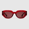 • Shiny transparent red acetate frame with allover GG motif