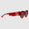 • Shiny transparent red acetate temples with allover GG motif and a Double G detail