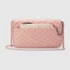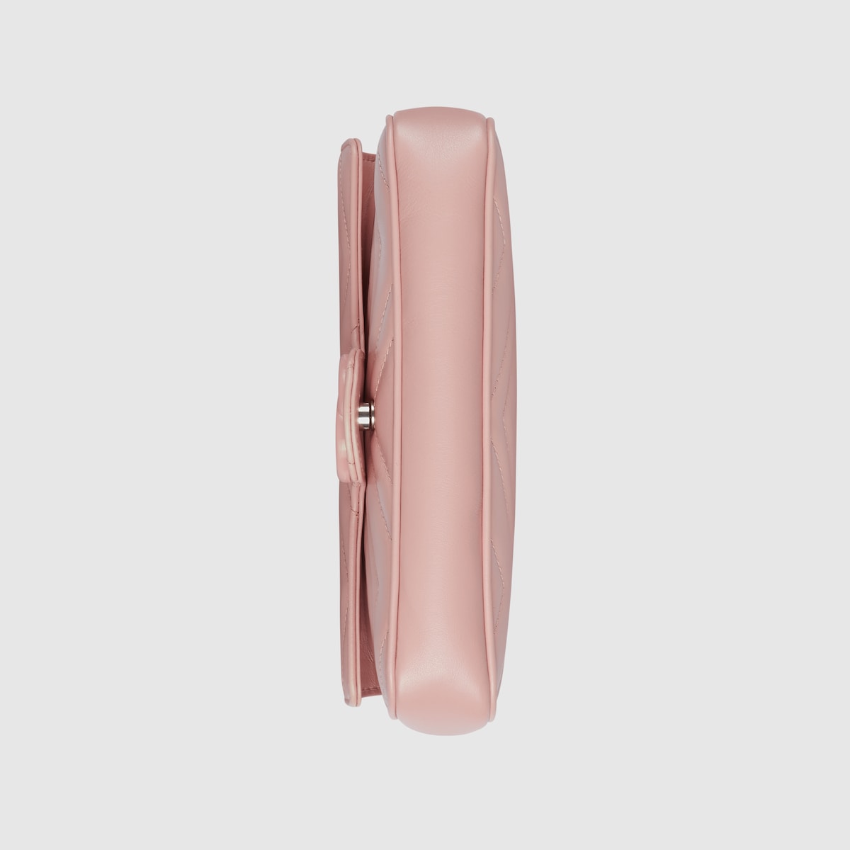 Gucci’s signature small accessories are constantly evolving around a dynamic narrative. A delicate shade of pink defines this GG Marmont mini bag, completed by matching tonal hardware. The inside features a contrasting white leather card case that can be detached.