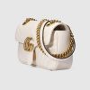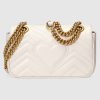 The mini GG Marmont chain shoulder bag has a softly structured shape and an oversized flap closure with Double G hardware. The sliding chain strap can be worn multiple ways, changing between a shoulder and a top handle bag. Made in matelassé chevron leather with a heart on the back.