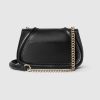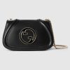 The new Gucci Blondie bag, whose distinctive logo first appeared in the House’s collections in the early 1970s, weaves together past and present in a fusion of nostalgia and modernity. This mini shoulder bag with a gold-toned chain is crafted from black leather, featuring the House’s round symbol in enamel.
