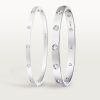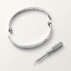 Product Description: LOVE bracelet White gold 750/1000 Set with 10 brilliant-cut diamonds totaling 0.96 carats Width: 6.1 mm Oval bracelet composed of two rigid arcs which is worn on the wrist and removed using a specific screwdriver The closure is designed with two functional screws placed on either side of the bracelet: you will need help to open or close it To determine the size of your LOVE bracelet measure your wrist adding one centimeter to your size for a tighter fit or two centimeters for a looser fit