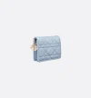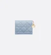 The Lady Dior Gardenia wallet is both compact and spacious. The pale blue lambskin with Cannage topstitching and detachable D.I.O.R. charms create a chic and timeless look. The compact miniature accessory can hold all the daily essentials and may easily be coordinated with other items from the Lady Dior line.