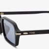 Rectangular Signature glasses in black acetate. Details inspired by the iconic Selleria stitching in gold-colored metal on the temples. Smoke-gray mirrored silver lenses. Dedicated eyewear pouch.