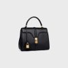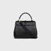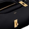 9 X 7 X 4 IN (23 X 18 X 10 CM) CALFSKIN LAMBSKIN LINING GOLD FINISHING HAND CARRY, SHOULDER CARRY AND CROSS-BODY CARRY TURN LOCK CLOSURE TWO MAIN COMPARTMENTS ONE INNER FLAT POCKET ONE INNER ZIPPED POCKET ONE OUTER FLAT POCKET ON THE FRONT UNDER THE FLAP REMOVABLE LEATHER STRAP WITH 18 IN (46 CM) DROP HANDLE WITH 3 IN (8.5 CM) DROP CLOCHE CLÉS BOTTOM STUDS SMALL 16 BAG IN SATINATED CALFSKIN WITH A LEATHER HANDLE, A REMOVABLE SHOULDER STRAP, AND AN OUTER FLAT POCKET UNDER THE FLAP. THE BAG HAS A TWIST LOCK CLOSURE AND A CELINE PADLOCK ON A LEATHER KEY COVER.
